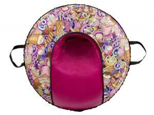 The top of this Luckyface tubing is made of an awning with a print that is resistant to frost down to -25 degrees. The bottom of the tubing is made of awning, the glossy surface of the material allows the tubing to glide perfectly on the snow surface. For comfortable riding, there are handles-holders and a towing cable made of a reinforced sling. The seams, carefully sewn with dense mylar thread, guarantee a long service life. The round safety seat has a reinforced bottom, and also has an additional sling under th The tubing is equipped with a reinforced rubber air chamber R16 designed for heavy loads. The camera is inserted inside the tubing and inflated using a powerful vehicle pump.